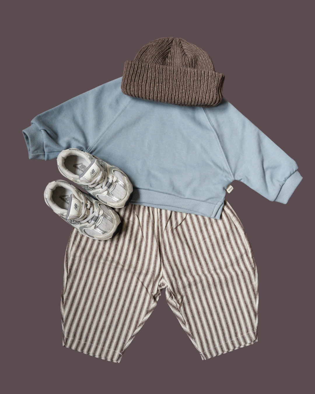 Een zachte essential in een vergrijsde blauwtint. Gemaakt van een fijne, stevige katoenmix die ook na tich keer wassen mooi blijft.