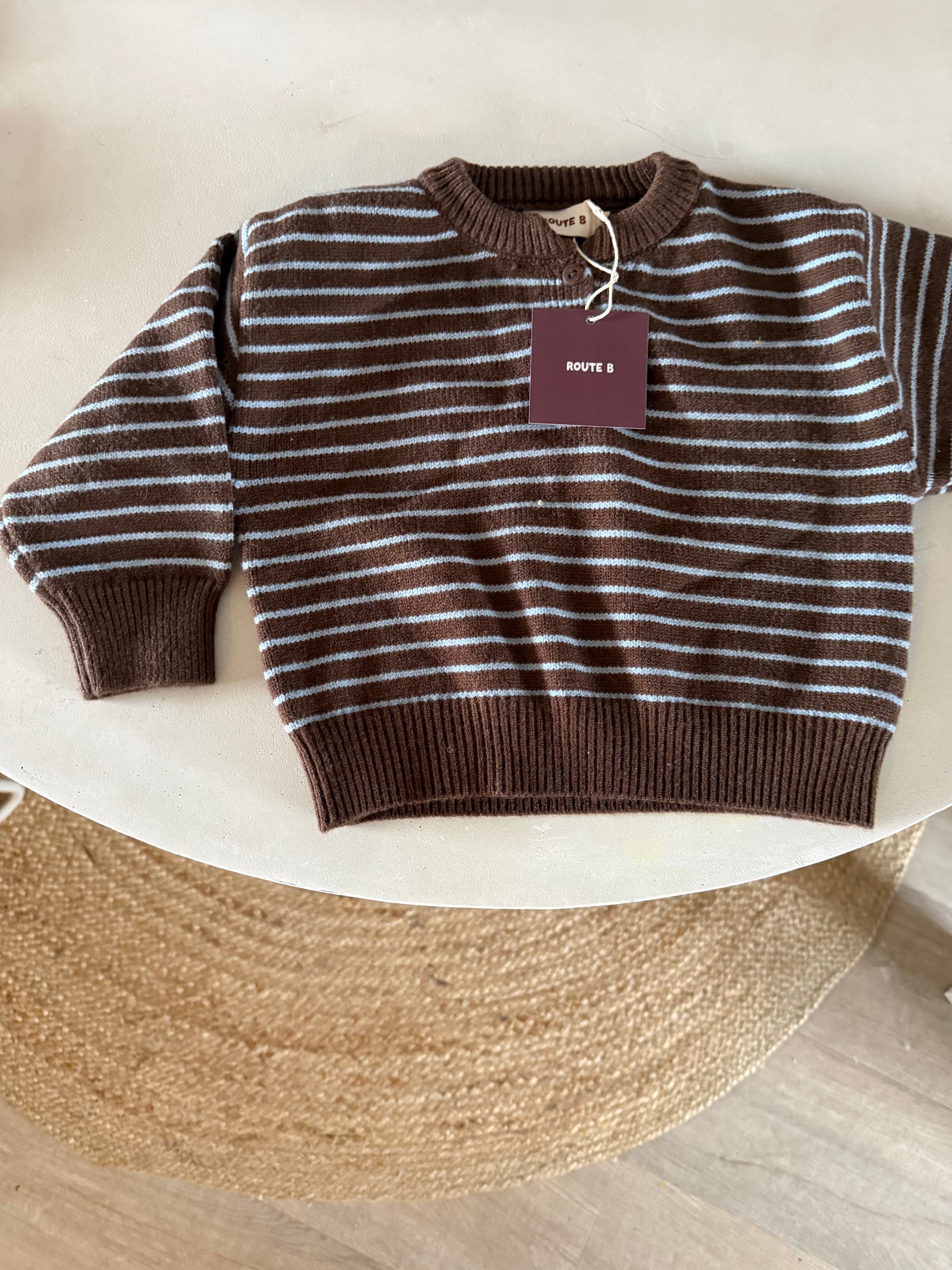 Bruin blauwe streep trui