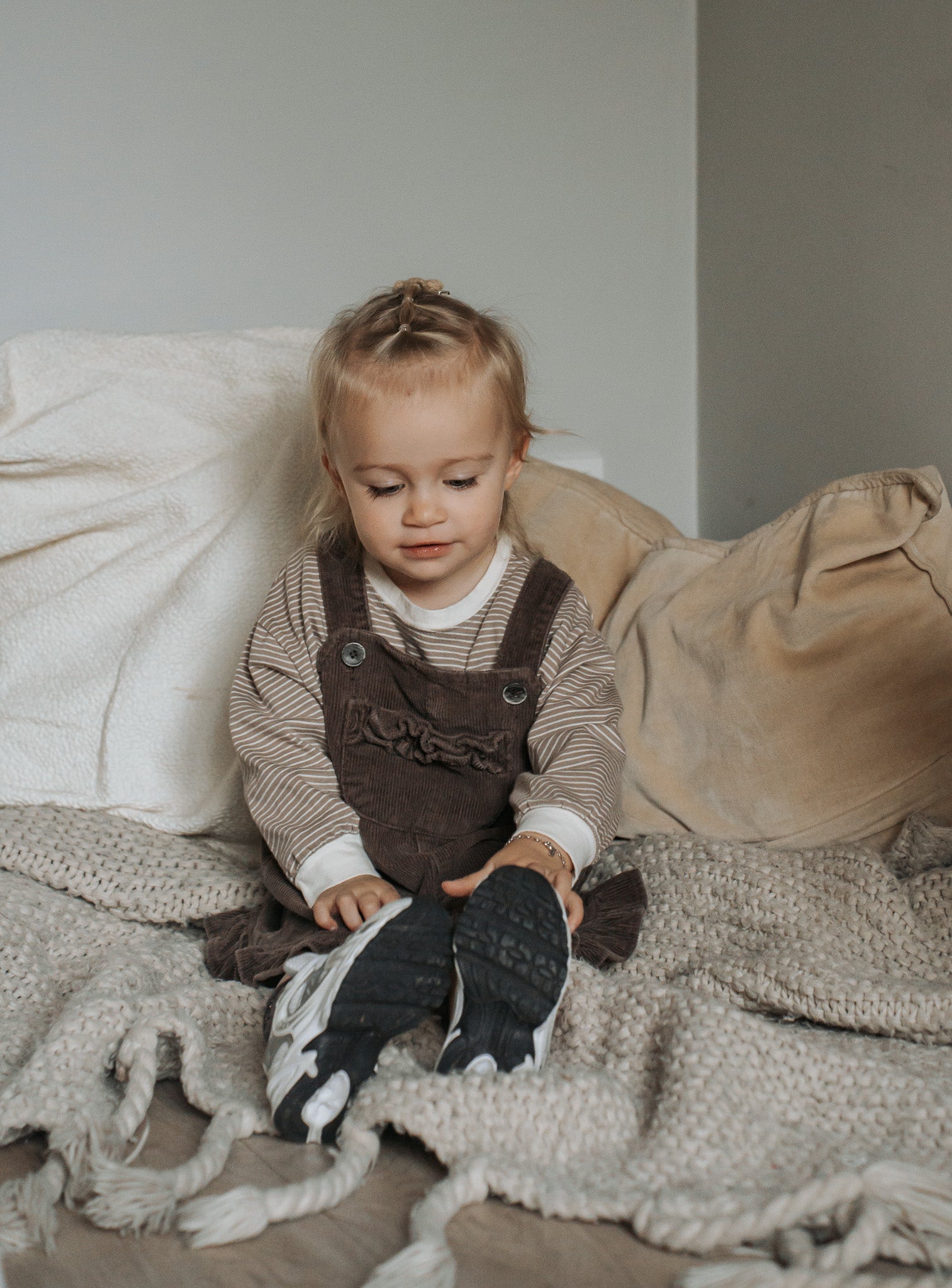 Deze jumper skirt is er zo eentje die altijd goed is – over een longsleeve, met kniekousen of panty, klaar voor school of een koffietje met mama.